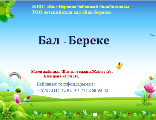ЖШС «Бал-Береке» бөбекжай балабақшасы ТОО детский ясли сад «Бал-Береке» |